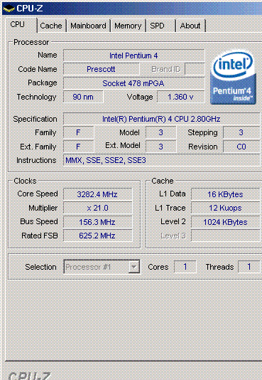 Результат разгона Intel Pentium 4 (Prescott)