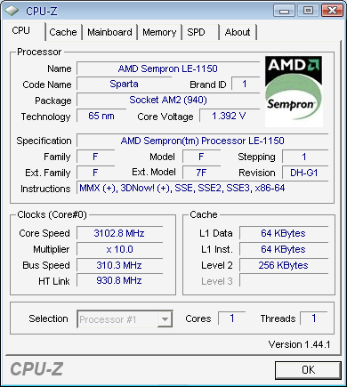 | Процессор (ядро) | AMD Sempron (Sparta) |