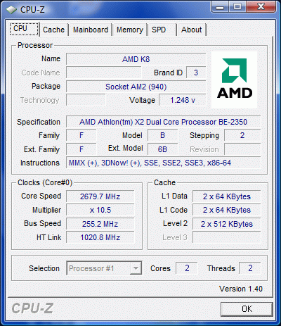 | Процессор (ядро) | AMD Athlon 64 X2 (Brisbane) |