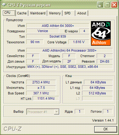 | Процессор (ядро) | AMD Athlon 64 (Venice) |