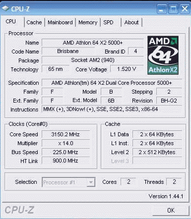 Результат разгона AMD Athlon X2 (Brisbane)