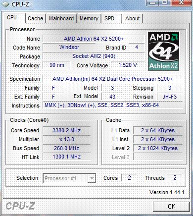 | Процессор (ядро) | AMD Athlon 64 X2 (Windsor) |