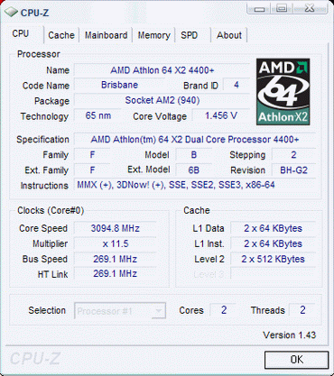 Результат разгона AMD Athlon 64 X2 (Brisbane)