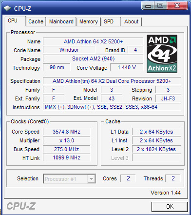 | Процессор (ядро) | AMD Athlon 64 X2 (Windsor) |