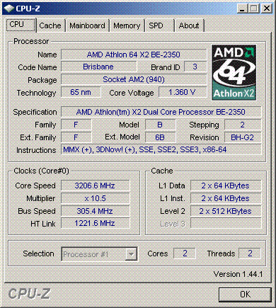 | Процессор (ядро) | AMD Athlon X2 (Brisbane) |