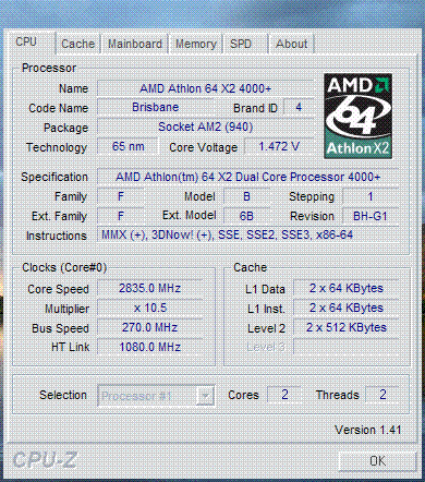 | Процессор (ядро) | AMD Athlon X2 (Brisbane) |