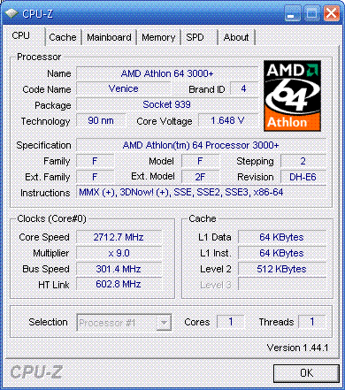 Результат разгона AMD Athlon 64 (Venice)