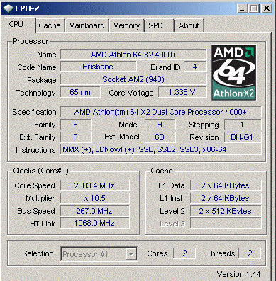 Результат разгона AMD Athlon 64 X2 (Brisbane)