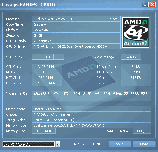 | Процессор (ядро) | AMD Athlon 64 X2 (Brisbane) |