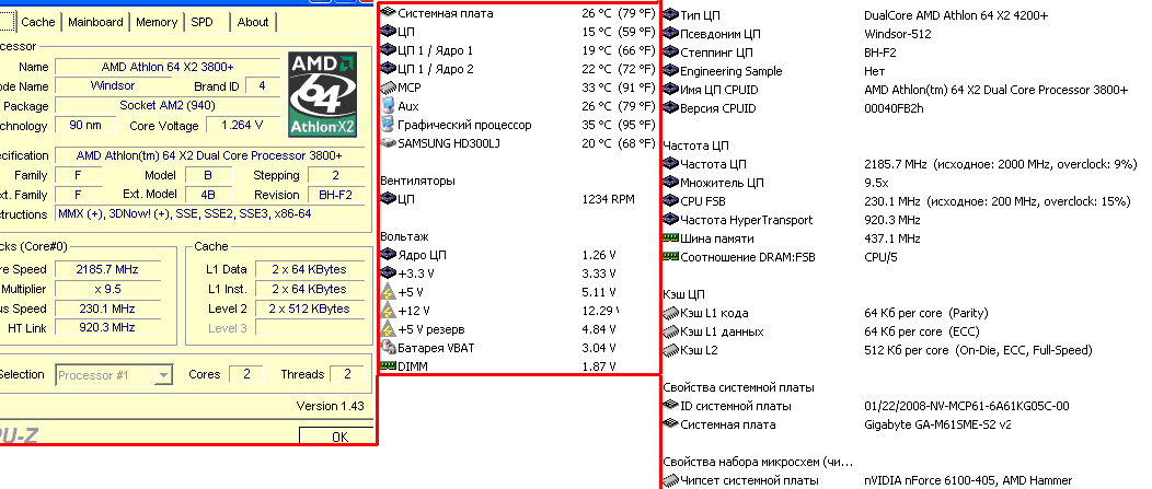 | Процессор (ядро) | AMD Athlon 64 X2 (Windsor) |