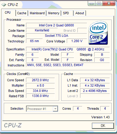 | Процессор (ядро) | Intel Core 2 Quad (Kentsfield) |