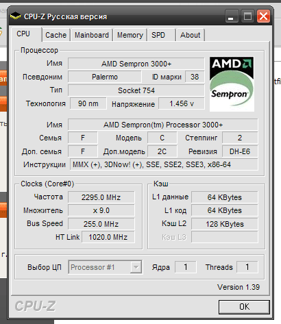 | Процессор (ядро) | AMD Sempron (Palermo) |