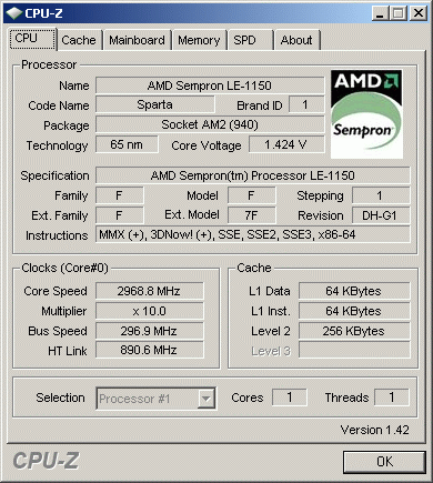 | Процессор (ядро) | AMD Sempron (Sparta) |