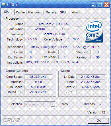 Результат разгона Intel Core 2 Duo (Conroe)