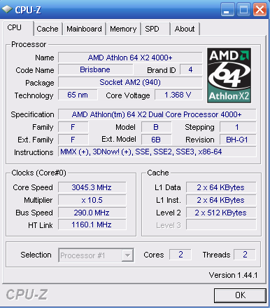 Результат разгона AMD Athlon 64 X2 (Brisbane)