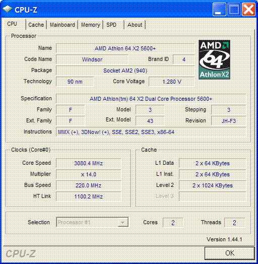 Результат разгона AMD Athlon 64 X2 (Windsor)