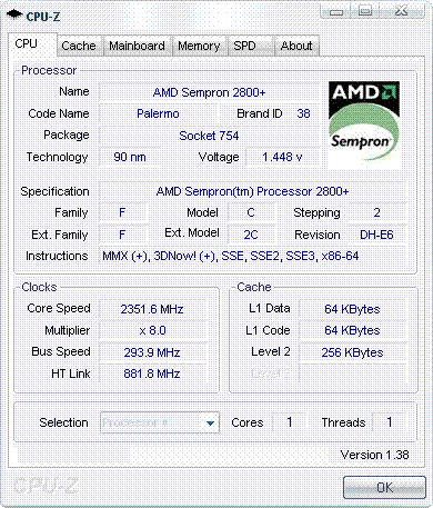 | Процессор (ядро) | AMD Sempron (Palermo) |