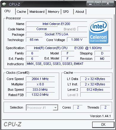Результат разгона Intel Celeron (Conroe-512)