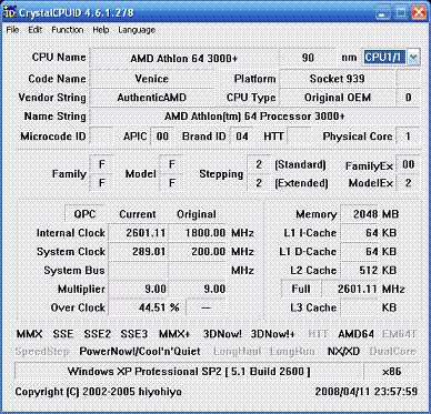 Результат разгона AMD Athlon 64 (Venice)