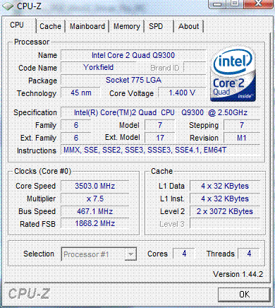 Результат разгона Intel Core 2 Quad (Yorkfield)