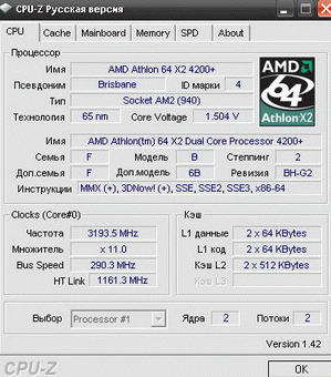 Результат разгона AMD Athlon 64 X2 (Brisbane)