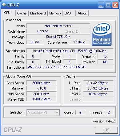 | Процессор (ядро) | Intel Pentium Dual-Core (Conroe-1M) |
