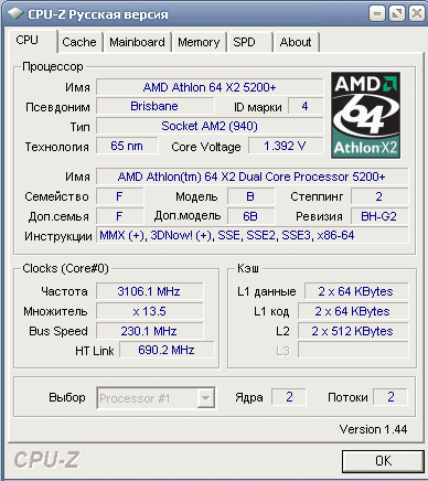 | Процессор (ядро) | AMD Athlon 64 X2 (Brisbane) |