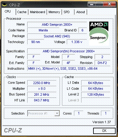 | Процессор (ядро) | AMD Sempron (Manila) |