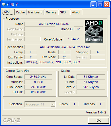 Результат разгона AMD Athlon 64 (San Diego)
