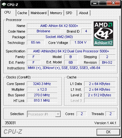 Результат разгона AMD Athlon 64 X2 (Brisbane)