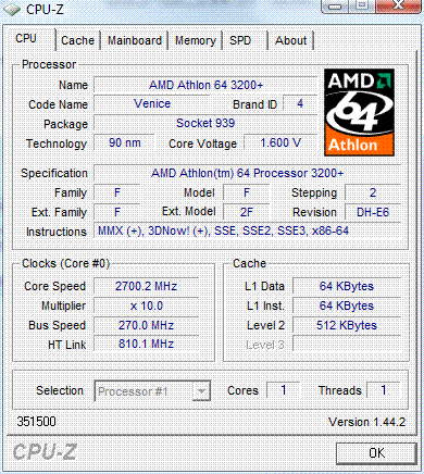 | Процессор (ядро) | AMD Athlon 64 (Venice) |