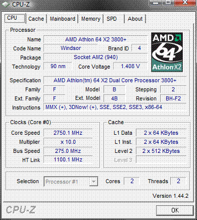 | Процессор (ядро) | AMD Athlon 64 X2 (Windsor) |
