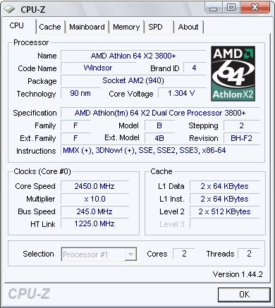 | Процессор (ядро) | AMD Athlon 64 X2 (Windsor) |