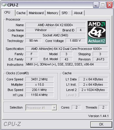 | Процессор (ядро) | AMD Athlon 64 X2 (Windsor) |