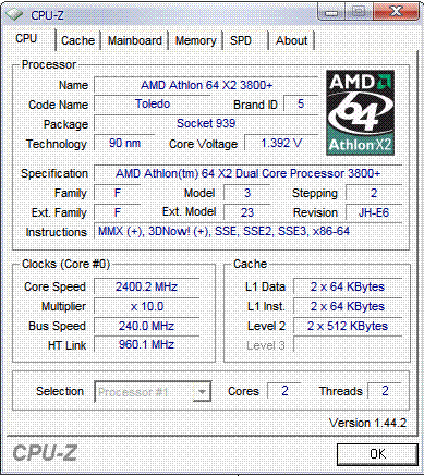 | Процессор (ядро) | AMD Athlon 64 X2 (Manchester) |