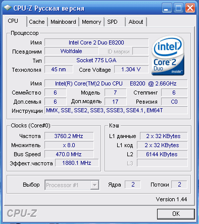 Результат разгона Intel Core 2 Duo (Wolfdale)