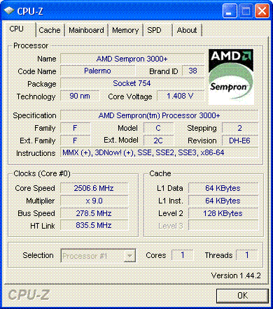 | Процессор (ядро) | AMD Sempron (Palermo) |