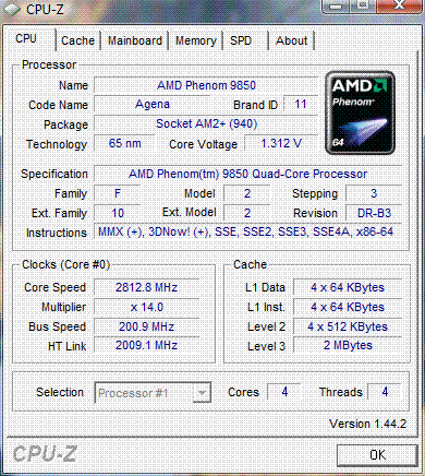 | Процессор (ядро) | AMD Phenom X4 (Agena) |