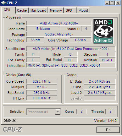 Результат разгона AMD Athlon 64 X2 (Brisbane)