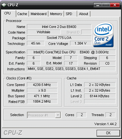 Результат разгона Intel Core 2 Duo (Wolfdale)
