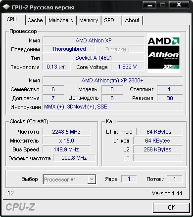 | Процессор (ядро) | AMD Athlon XP (Thoroughbred) |