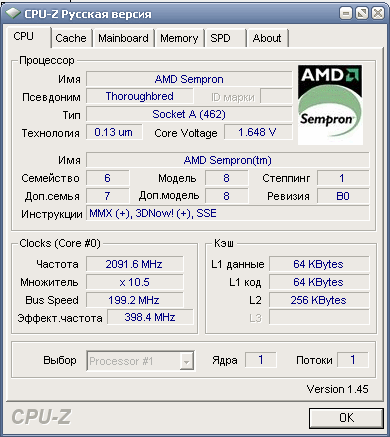 | Процессор (ядро) | AMD Sempron (Thoroughbred) |