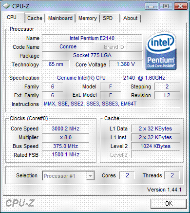 Результат разгона Intel Pentium Dual-Core (Conroe-1M)