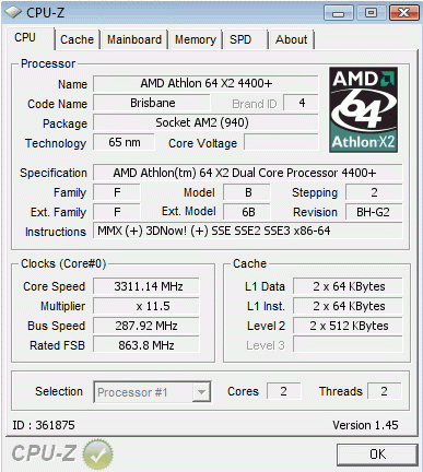 Результат разгона AMD Athlon 64 X2 (Brisbane)