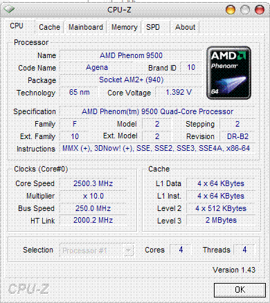 | Процессор (ядро) | AMD Phenom X4 (Agena) |