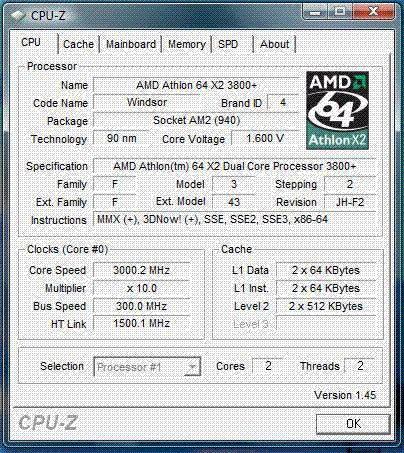 | Процессор (ядро) | AMD Athlon 64 X2 (Windsor) |