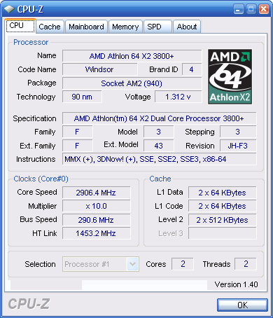 | Процессор (ядро) | AMD Athlon 64 X2 (Windsor) |