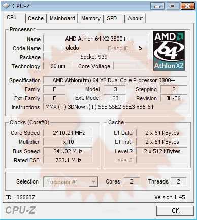 Результат разгона AMD Athlon 64 X2 (Toledo)