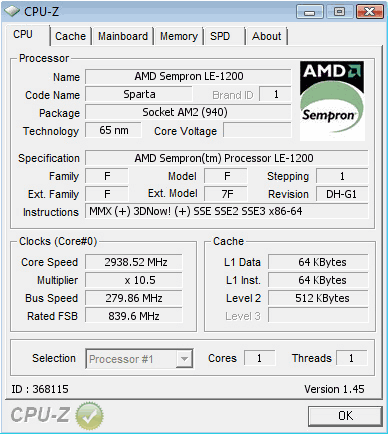 | Процессор (ядро) | AMD Sempron (Sparta) |