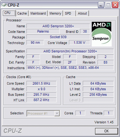 | Процессор (ядро) | AMD Sempron (Palermo) |